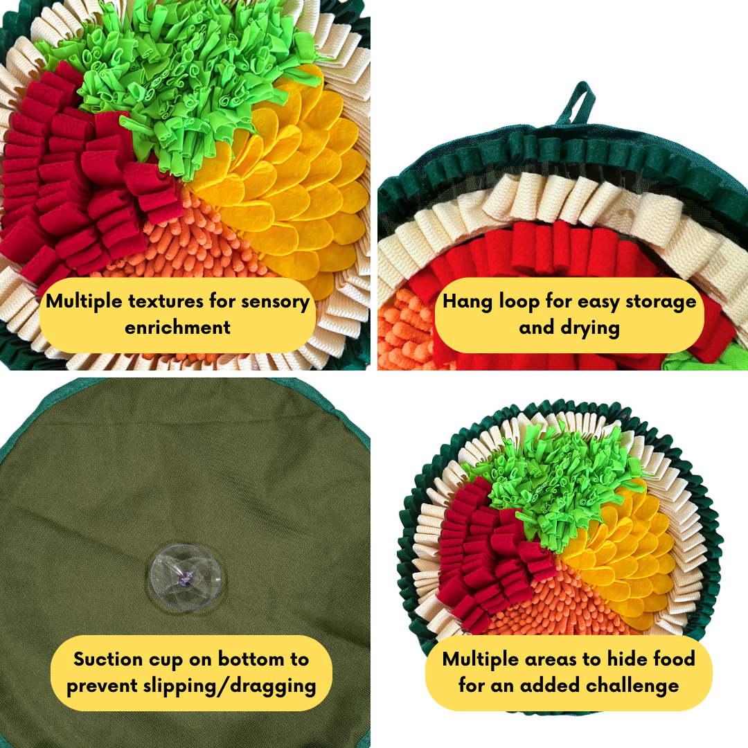 • Different snuffling areas within multiple textures of the mat